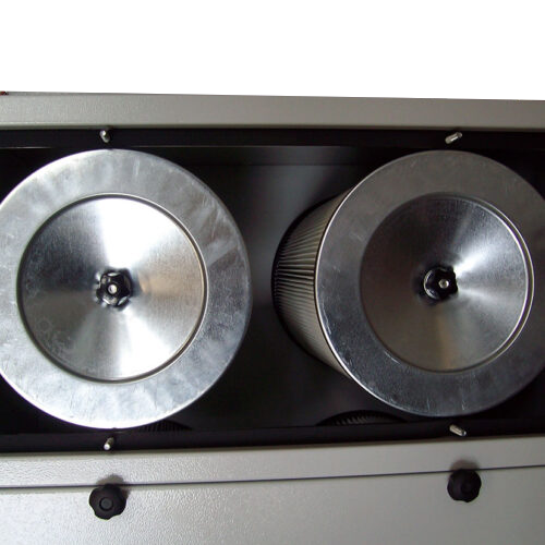 Filtering is carried out by 4 cilindric cartridge filters and 1 compact filter (v-bank style) on the output.